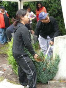 Graf schoonmaken mama/oma/oyang en Wim/opa/Oyang 11 juli 2009
