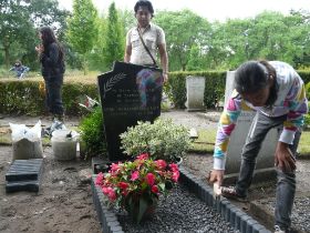 Graf schoonmaken mama/oma/oyang en Wim/opa/Oyang 11 juli 2009